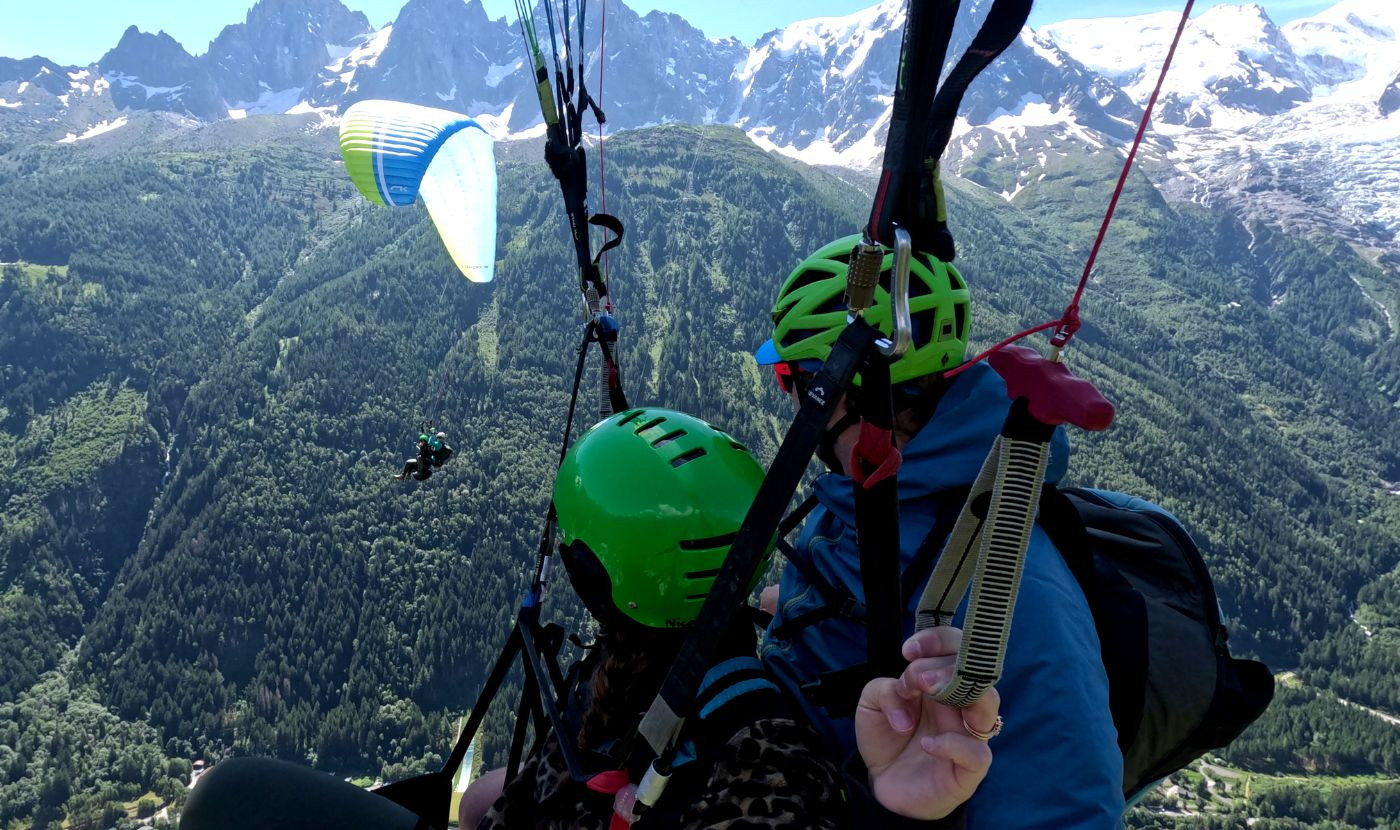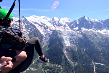 Au décollage de parapente du Plan de l’Aiguille, votre moniteur vous équipe et prépare soigneusement la voile. Quelques explications, une petite course d’élan, et vous voilà dans les airs, face aux glaciers, et aiguilles de la vallée de Chamonix.