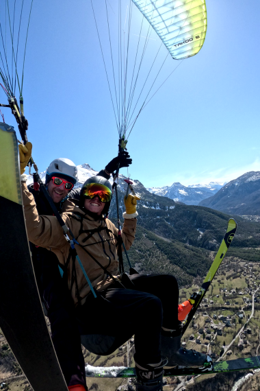 Discover an exceptional aerial experience in Puy Saint Vincent, a paragliding experience carried out on skis from the top of the area. Your instructor, a state graduate with many years of experience, will accompany you step by step to experience a unique, accessible and unforgettable moment. As soon as you arrive at takeoff, the atmosphere is calm, alpine, and you feel the excitement of a flight that promises to be grandiose.